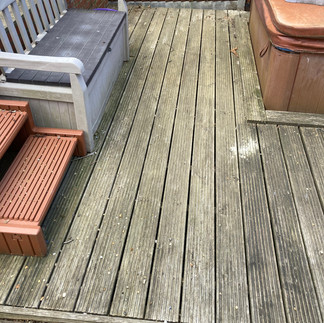 Once the decking had been cleaned, we applied an oxalic acid solution to brighten the wood by removing any surface weathering, or 'greying'. The acidic nature of the solution also brings the PH of the wood back into balance, which will prolong it's life.